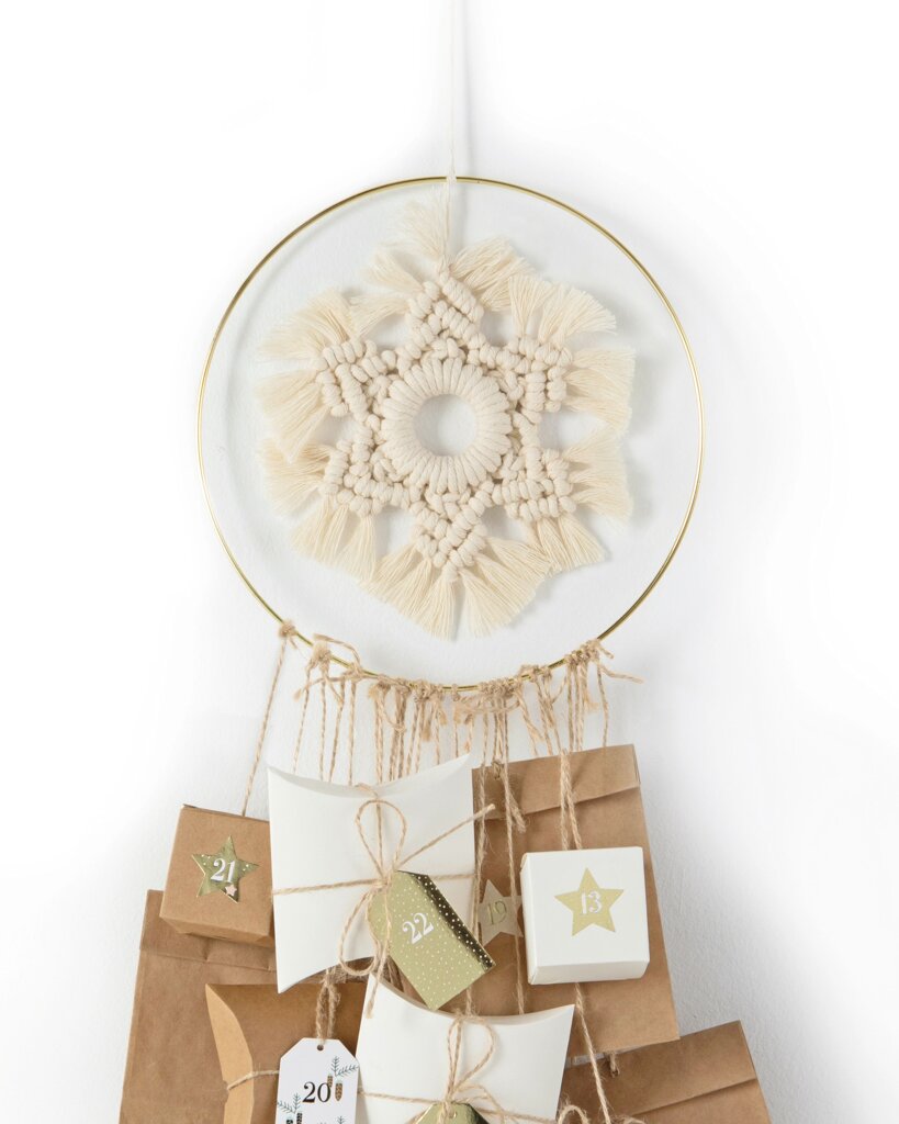 Adventný kalendár macramé so snehovou vločkou na výrobu. Vyrobte si nádherný adventný kalendár. Sada obsahuje všetko na jeho výrobu.