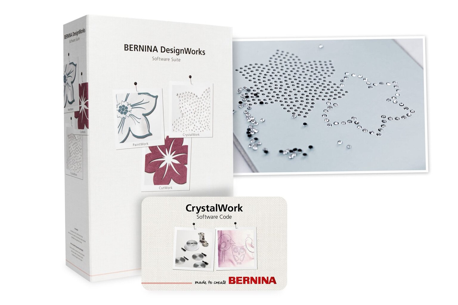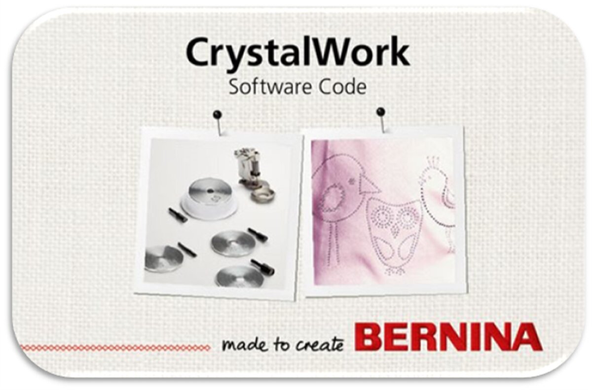 S pomocou tohto softvéru vytvoríte motívy, ktoré s pomocou vyšívacieho modulu a nástroja pre CrystalWork premeníte na šablóny pre nažehľovanie kryštálov. S týmto softvérom môžete tvoriť podľa ľubovôle, Vašu predstavivosť nemusíte nijako obmedzovať. Aby ste dosiahli požadované výsledky potrebujete šijací stroj Bernina s vyšívacou funkciou a nástroj CrystalWork, ktorý sa nasadzuje namiesto prítlačnej pätky. Skombinujte svoju výšivku s trblietavými kryštálmi - budete prekvapení, aké výsledky je možné dosiahnuť či už na odevoch, bytových doplnkoch neo quiltoch.