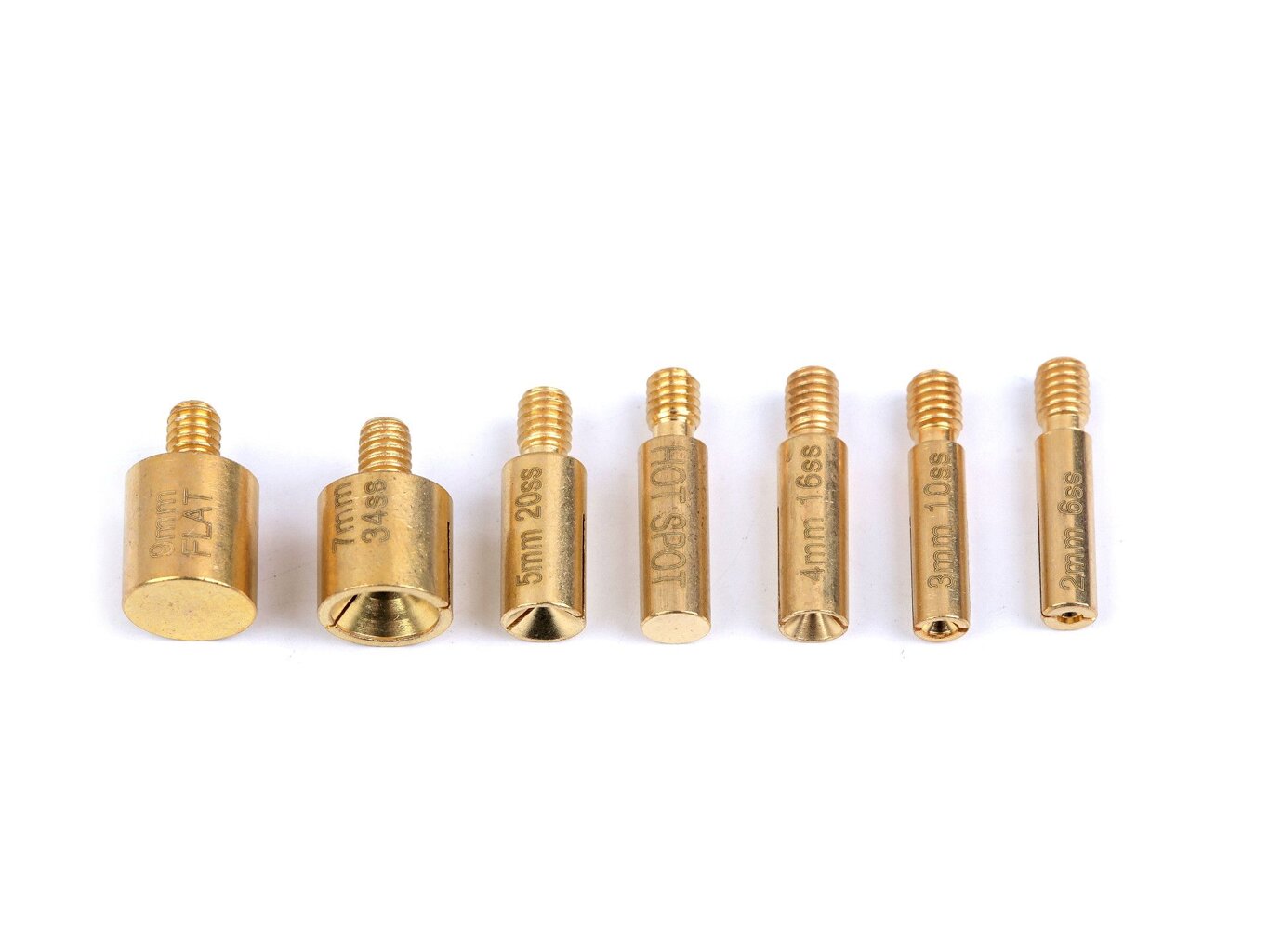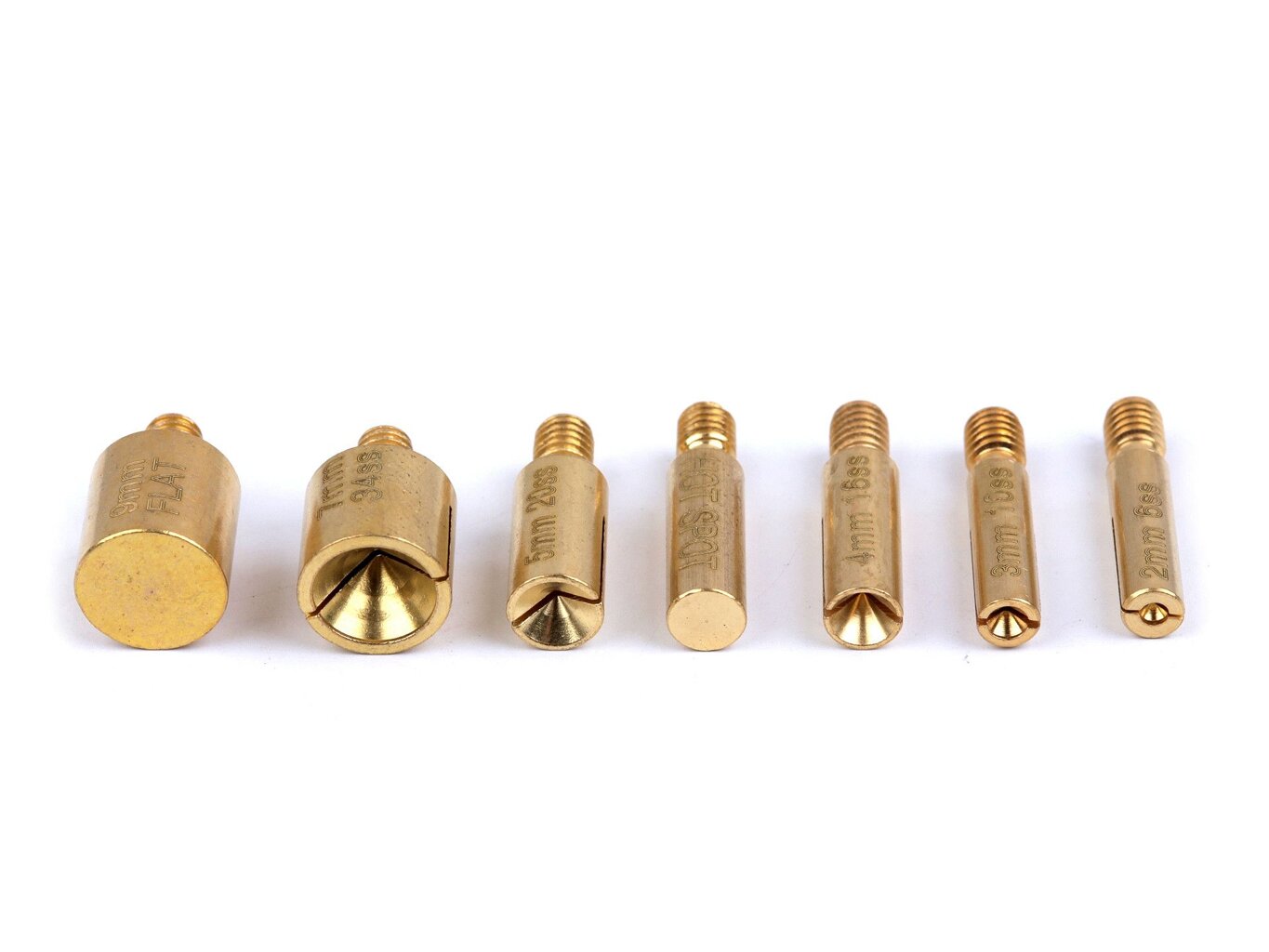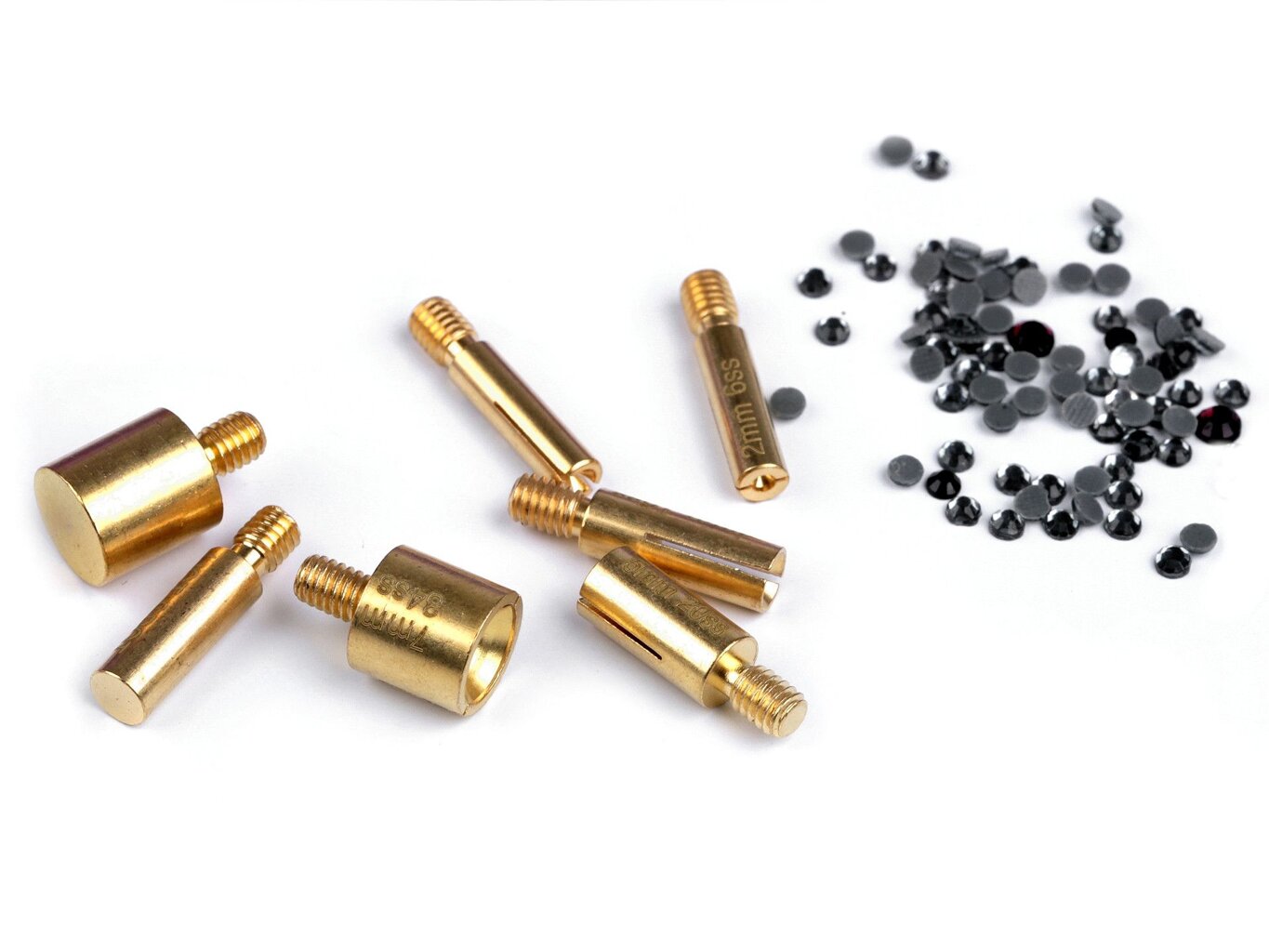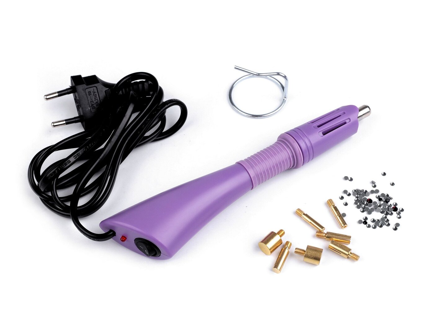 Aplikátor dodávame v komplete so 7 nástavcami (veľ. ss6/2 mm, ss10/3 mm, ss16/4 mm, ss20/5 mm, ss34/7 mm - pre vypuklé hot fixy, veľ. 5 a 9 mm pre rovné hot fixy) a stojanom. Odporúčame vyskúšať na malom kúsku látky! Nástavec dosahuje vysoké teploty, takže aby nedošlo k poškodeniu látky, pokiaľ by bola z umelého materiálu!