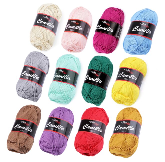 Bavlnená pletacia priadza Camilla (50 g) je veľmi príjemná pletacia priadza zo 100% bavlny. Klubko priadze má hmotnosť 50g a návin 125m.