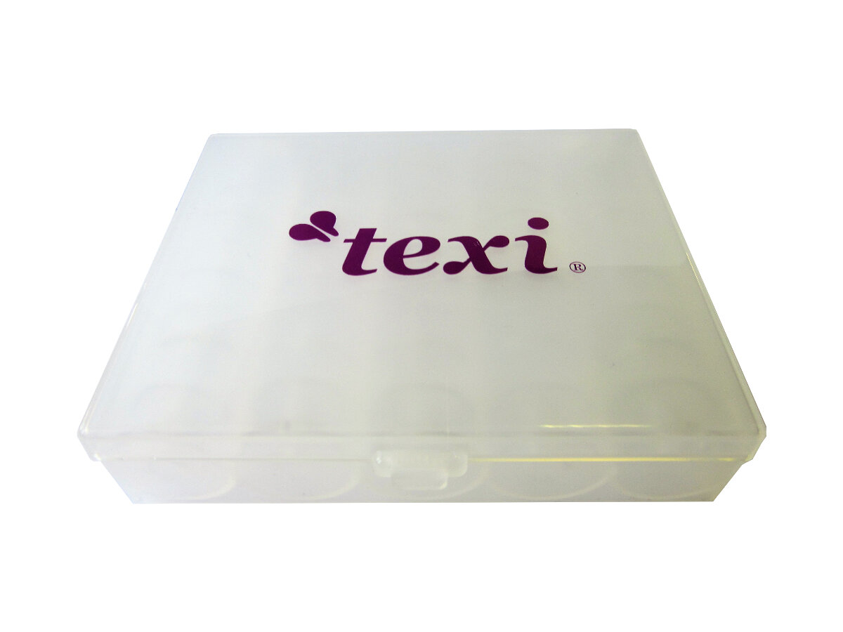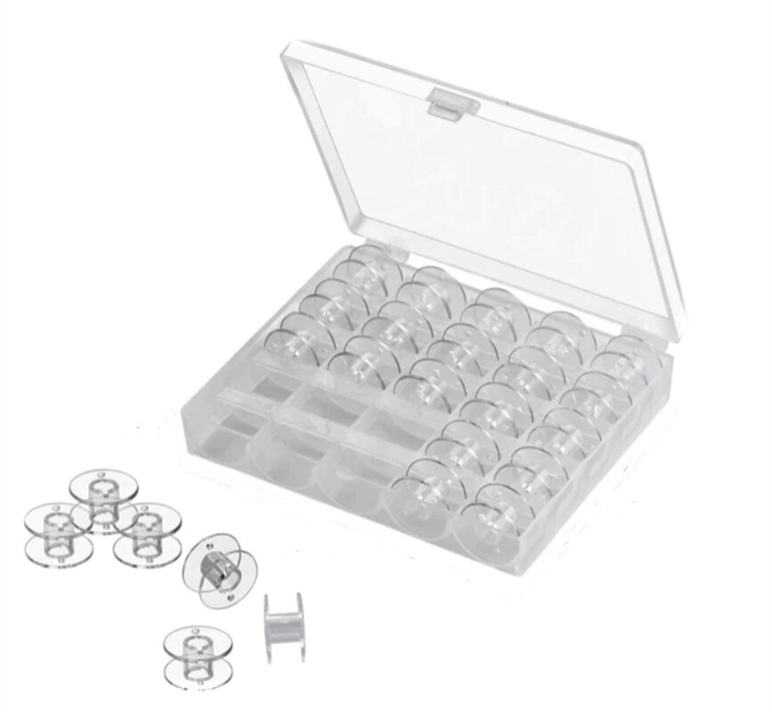 Box na cievky - plný (25 ks cievok) je praktické príslušenstvo, ktoré slúži na uloženie až 25 ks cievok pre šijacie stroje. Súčasťou balenia je aj 25 ks plastových cievok vhodných pre väčšinu šijacích strojov s kyvným CB chapačom.