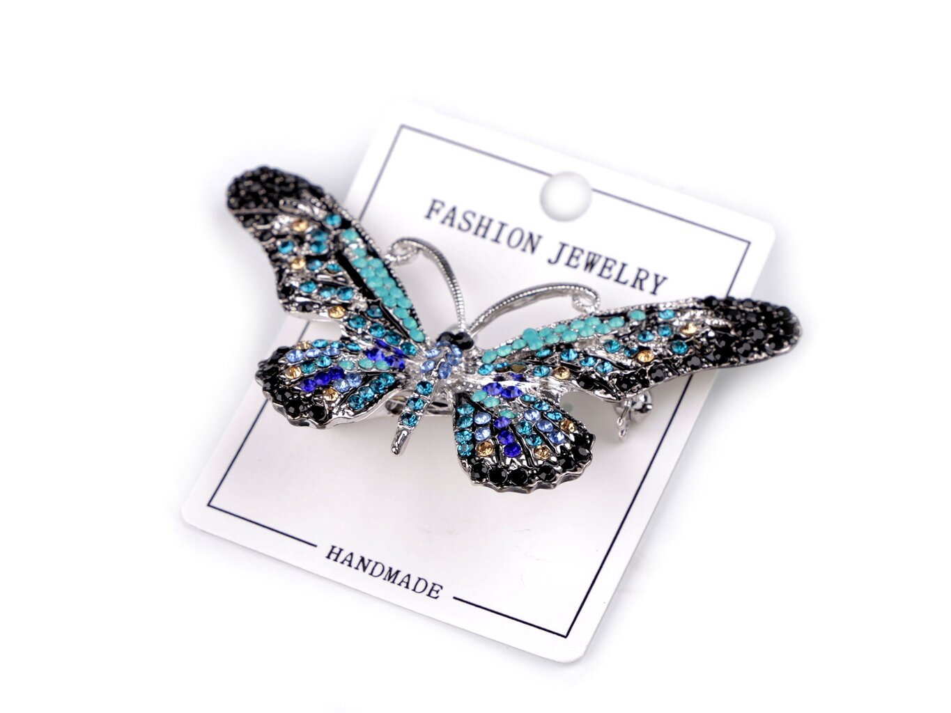 Brošňa farebný motýlik vysadený kamienkami je neprehliadnuteľná brošňa, ktorá nadchne úplne každého. Brošňa je vysadená trblietavými kamienkami.