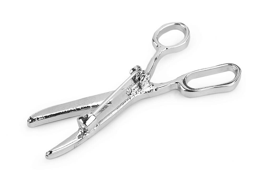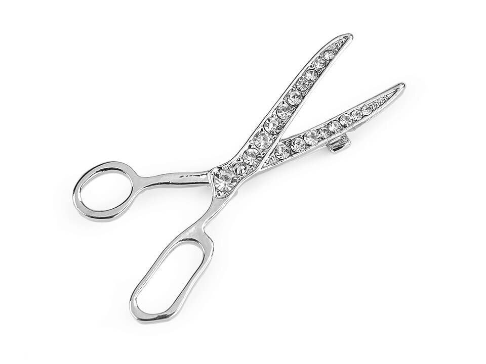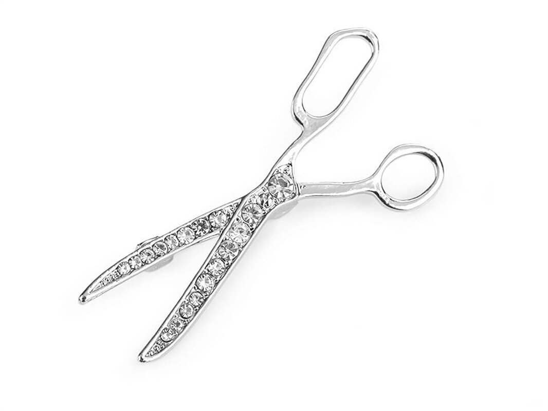 Brošňa nožnice s brúsenými kamienkami - platina je prevažne pre tie, ktoré milujú vintage štýl a potešia tak nielen krajčírku. Brošňa je decentne ozdobená brúsenými kamienkami.