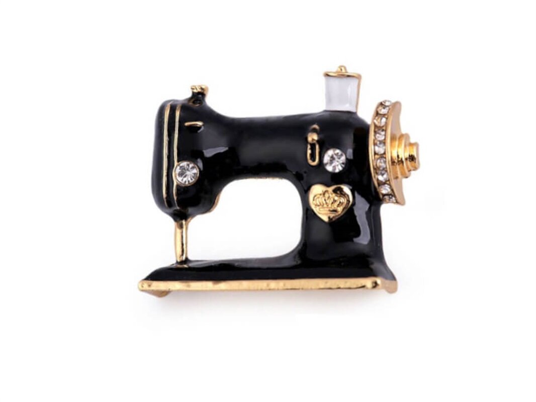 Brošňa šijací stroj - čierna je prevažne pre tých, ktoré milujú vintage štýl a potešia tak nielen krajčírku. Brošňa je decentne ozdobená brúsenými kamienkami.