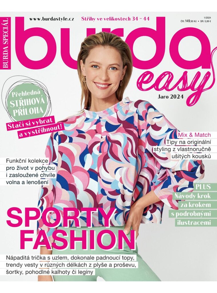 Milujete pohyb a snažíte sa žiť aktívne? Alebo ste sa práve teraz rozhodli začať viac športovať? Pokiaľ máte rada originálnu módu a zároveň je vašim koníčkom šitie, potom ste tu správne. Špeciál Burda Easy ponúka opäť kolekciu jednoduchých, avšak veľmi atraktívnych modelov, ktoré hravo zvládnu aj začiatočníčky. Tentokrát sme vydaniu venovali funkčnému oblečeniu vhodnému do posilňovne, na behanie, jogu, ale aj prechádzky a pohodu vo voľnom čase. Všetky strihy sú k dispozícii vo veľkostiach 34 až 44. Ako vždy nesmie chýbať ani praktická strihová príloha a podrobné pracovné návody, ktoré najnovšie nájdete v zadnej časti časopisu.