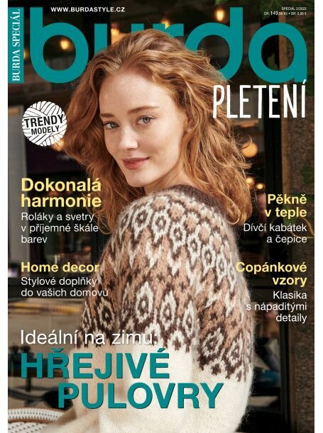 obchod@raj-sitia.skBurda Speciál 2/2023 - pletení přináší tipy na pletení. Zima je tu a s ní také touha o obohacení šatníku o nové pletené kousky. Stránky letošního druhého pletařského speciálu z dílny Burda jsou plné originálních kousků ve všech úrovních obtížnosti, takže si na své skutečně přijde každá čtenářka, ať už kmitá jehlicemi pěknou řádku let, nebo se s nimi teprve seznamuje.