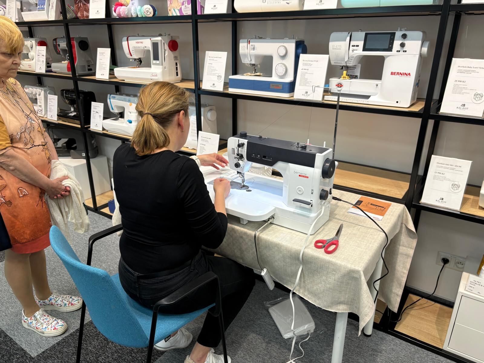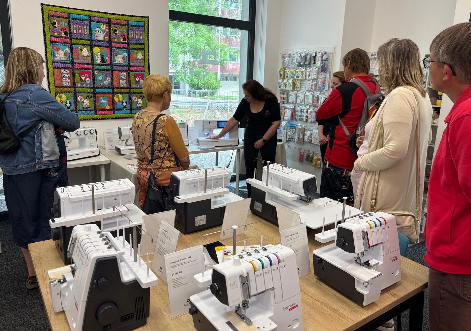 Exkluzívne sme tu predstavili nový šijací stroj Bernette b08, ktorý účastníkom Dana a Pavla ukázali priamo v akcii pri šití.