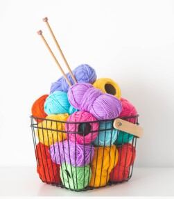 Mlýnek na pletení je jistotou překvapení u vánočního stromečku. Nezapomeňte vložit do košíku i nějaké pletací příze.