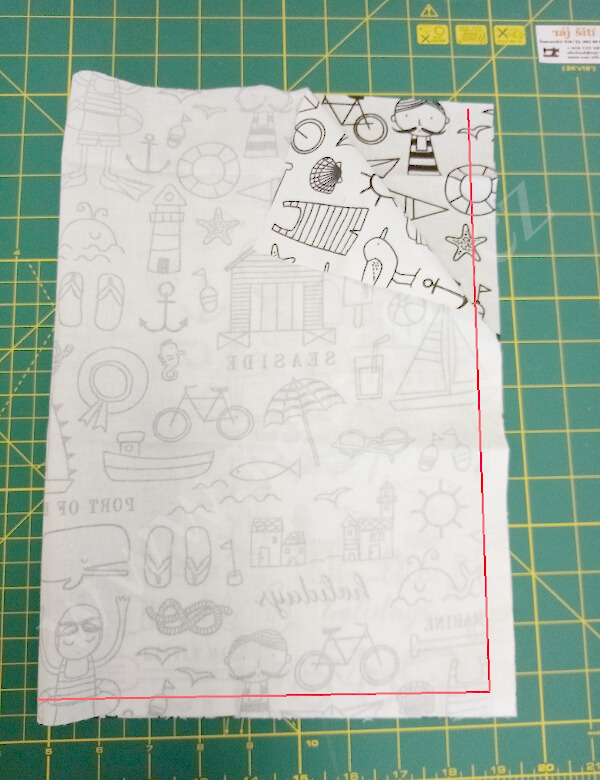 - Materiál přehneme na polovinu, lícem dovnitř. Sešijeme na šicím stroji 1 cm od okraje – boční a spodní stranu. Okraj začistíme „entlem“ nebo overlockovým stehem.
