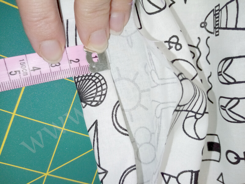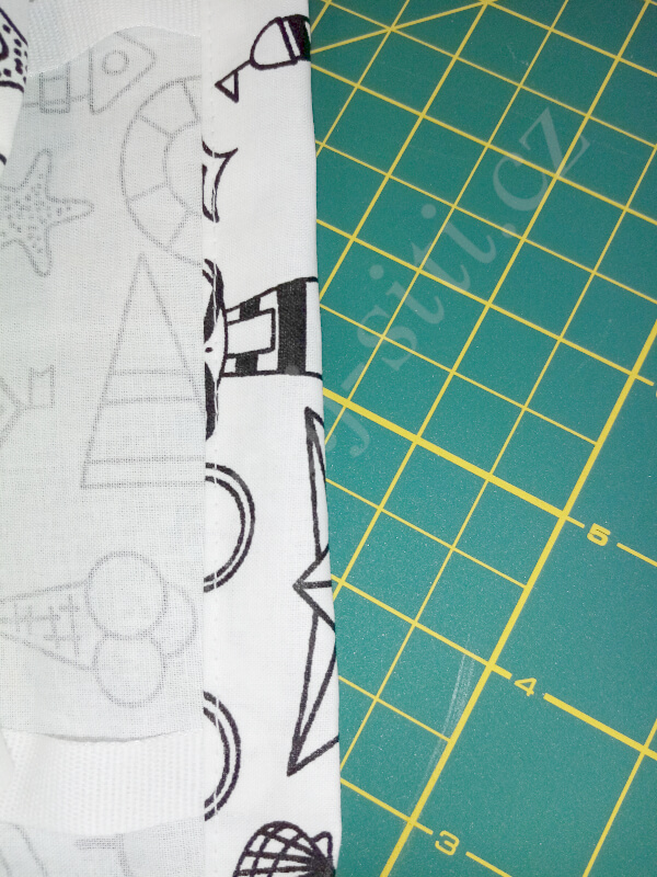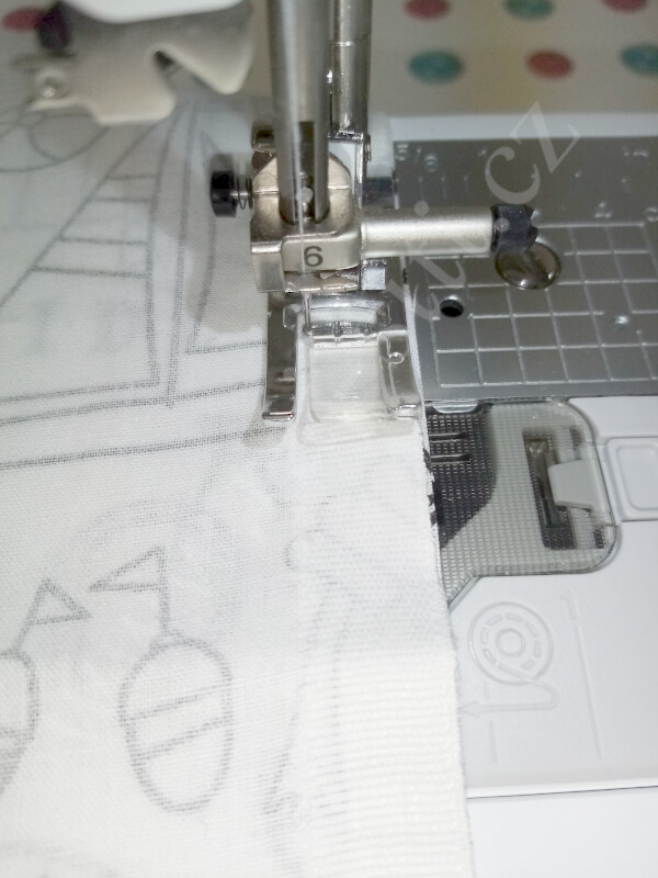 Náš tip: jak dosáhnout potřebné vzdálenosti šití od okraje bez měření? Nastavte si na šicím stroji rovný steh s jehlou vlevo a pravý okraj patky, veďte po kraji materiálu.
