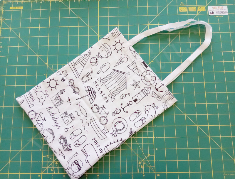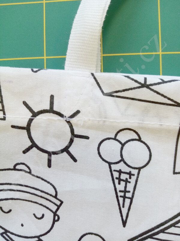 - Uši z tašky vytáhneme a prošijeme na šicím stroji do kříže, pro zpevnění.