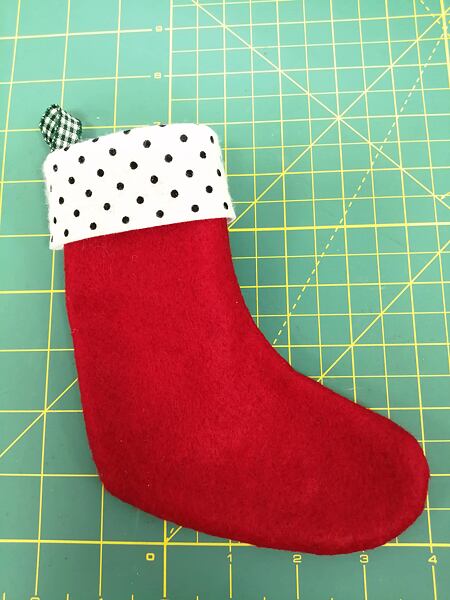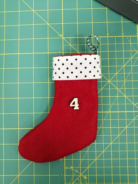 7. Nalepíme čísla - čísla na punčochy můžete samozřejmě i vyšít na vyšívacím stroji nebo volným quiltováním (viz ukázka níže).