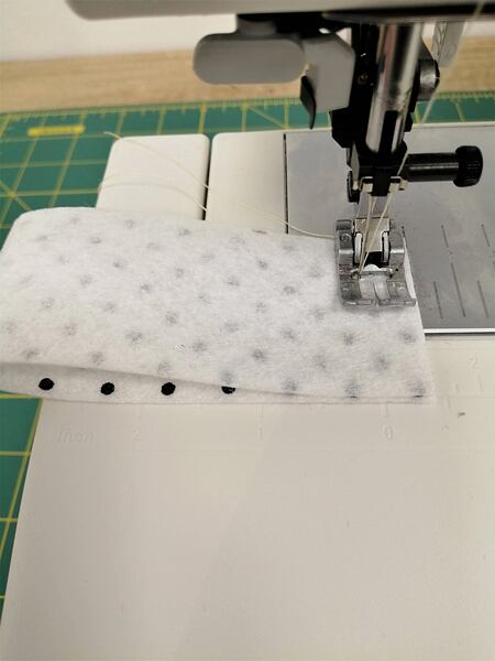 3. Proužek složíme lícem k sobě a sešijeme na šicím stroji.