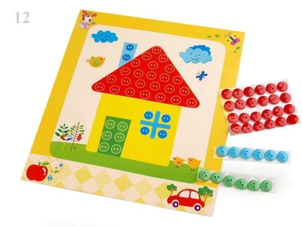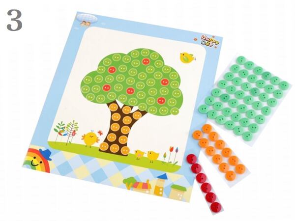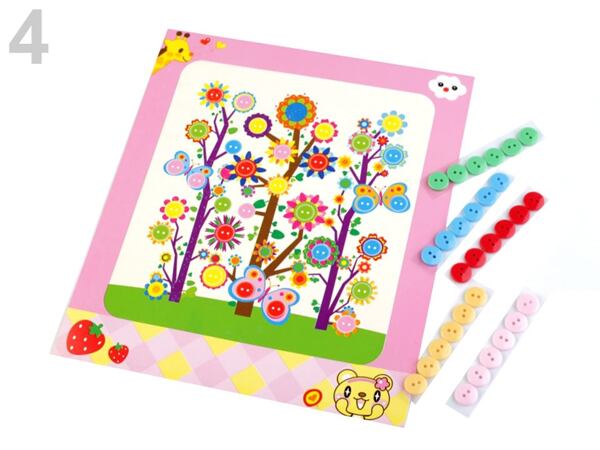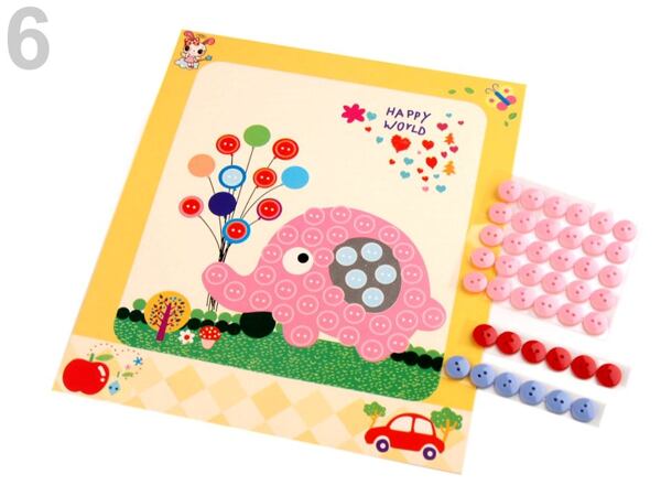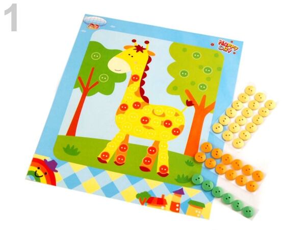 Kreativní sada s knoflíky je pro to jako stvořená. Samolepící barevné knoflíky, které dítě jednoduše umisťuje na obrázek.