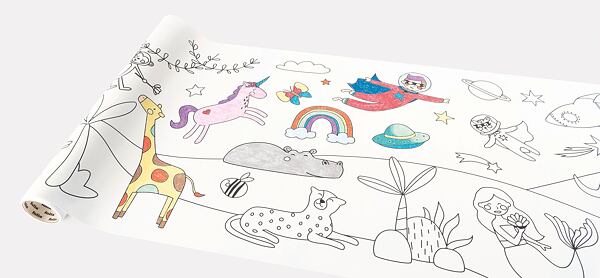 Jednoduše vyrolujete kousek papíru, ustřihnete a dítě může vymalovávat. Papír je dokonce samolepící, takže si dítě může papír pro vykreslování nalepit na stůl nebo si může obrázek po vykreslení vystřihnout a poslouží mu jako samolepka.