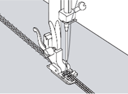 - Nasaďte na stroj patku pro všívání šňůrek.