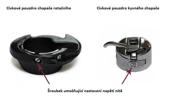 Na stroji lze regulovat napětí horní nitě a u šicích strojů s kývným CB chapačem (vkládáme cívku vertikálně do cívkového pouzdra) i napětí nitě spodní.