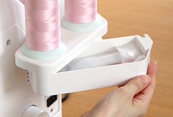 Vzduchové navliekanie nití ExtraordinAir® pri coverlocku Baby Lock Primo BLP6: stačí zasunúť koniec nite do navliekacieho portu a je po probléme s navliekaním nite. Nemusíte sa báť skrútenia nite a nepotrebujete farebné značenie. Tým sa dostáva medzi najkomfortnejšie coverlocky na trhu v kategórii coverlocky pre domácnosť.