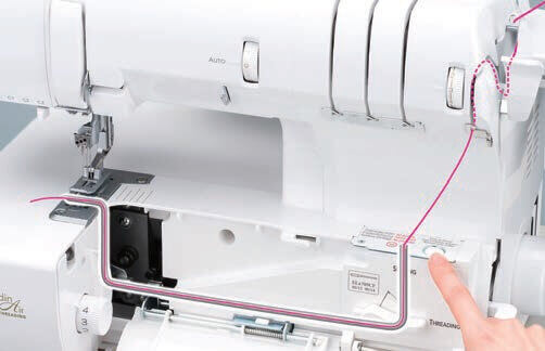 Automatické navliekanie nití ExtraordinAir® - stačí jednoducho zasunúť koniec nite do navliekacieho portu a stlačiť tlačidlo. Vďaka prúdiacemu vzduchu v navliekači už nie je pri navliekaní problém.
