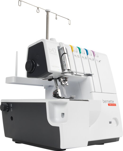 Coverlock Bernette b42 Funlock je 3 a 4-nitný stroj na bielizňový steh, ktorý je vybavený 4 typmi stehu. Stroj šije profesionálne stehy dĺžok a výstrihov v pohodlí domova.