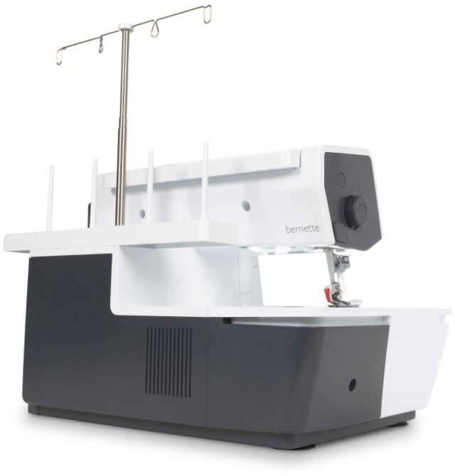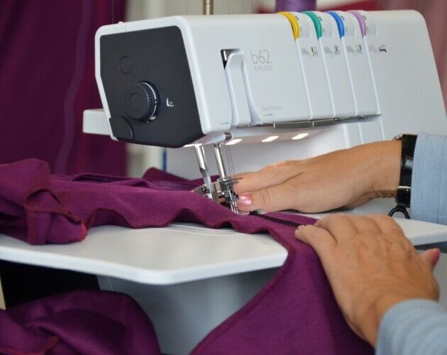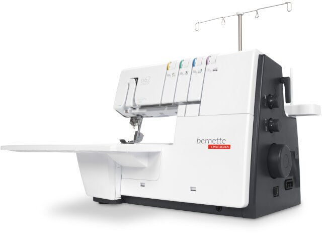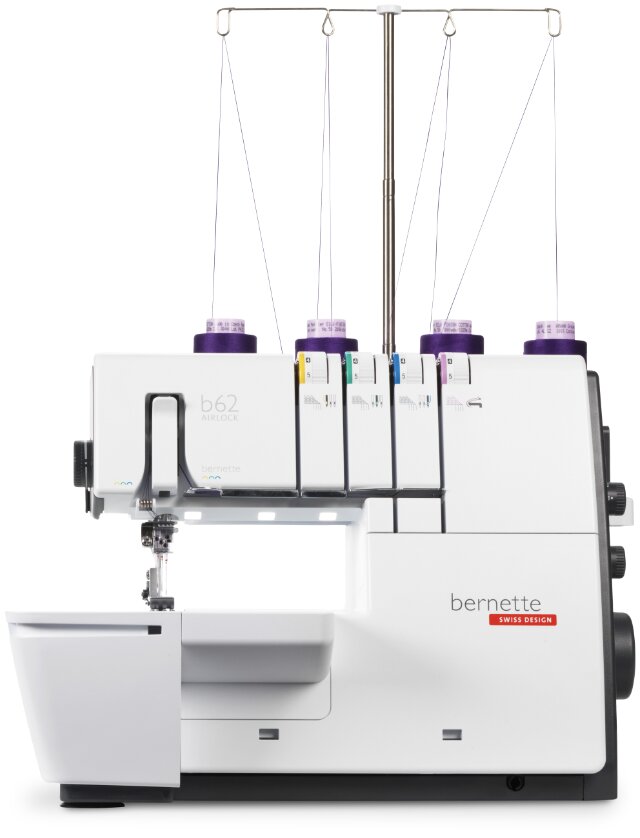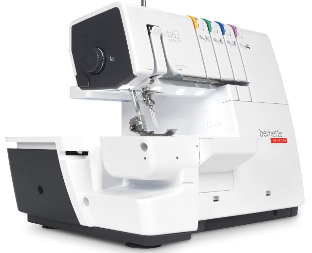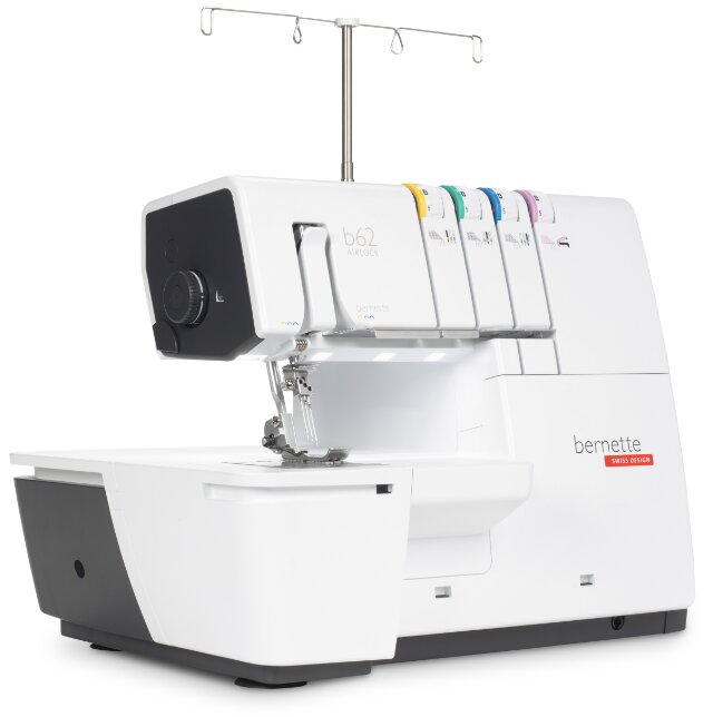 Coverlock Bernette b62 Airlock je až trojihlový stroj na bielizňový spodom krycí steh. Vzduchový navliekač, prídavný stolík dokonale zjednodušuje šitie.