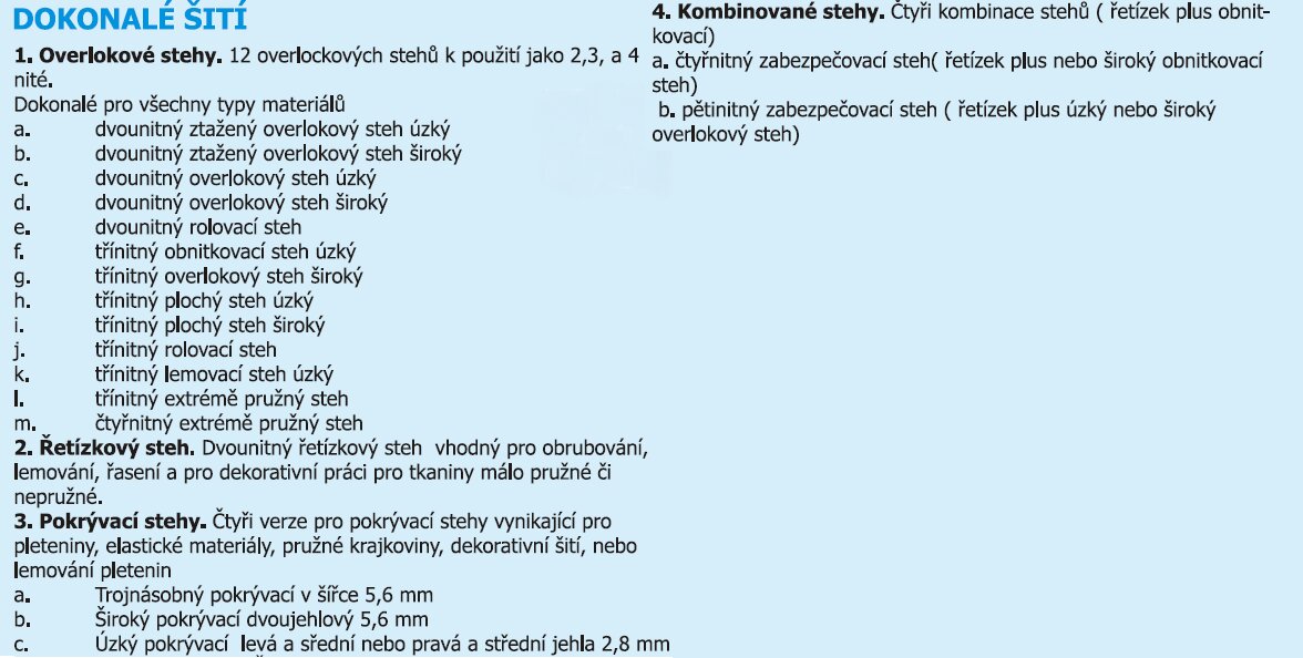 Stehy, ktoré má overlock - coverlock Merrylock MK 3050 CL:
