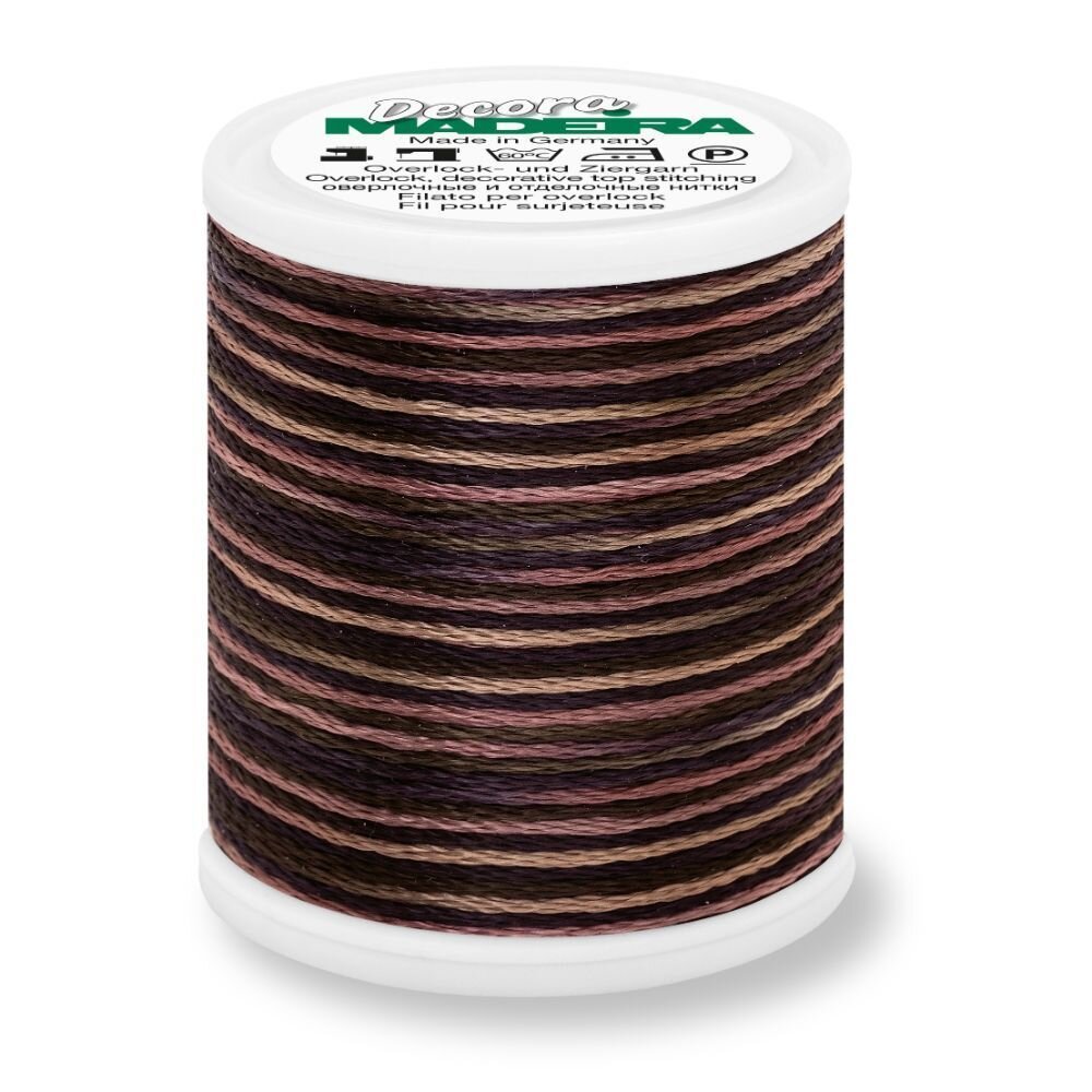Objemná dekoratívna priadza určená pre ozdobné overlockové švy, Bobbin Work, ručné háčkovanie a ručné šitie. Niť Decora 6 sa nespracováva strojovou ihlou. Používa sa do overlocku do horného slučkovača alebo na šijacom stroji pre už spomínaný Bobbin Work. Niť je vyrobená z vysoko kvalitnej viskózy, ktorá má dokonalý lesk, ktorým táto bohatá niť vyniká. Pri šití ozdobných stehov na overlocku vytvoríte neskutočne originálne stehy, ktoré podčiarknu pri Vašich odevoch originalitu.
