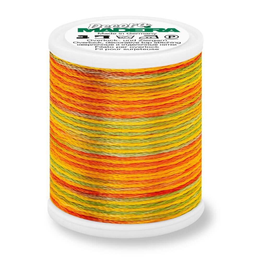 Dekoratívna niť Madeira Decora č.6 (100 m) je objemná dekoratívna niť, ktorá sa používa pri háčkovaní, ozdobných overlockových stehoch a pri trojrozmernom vyšívaní.