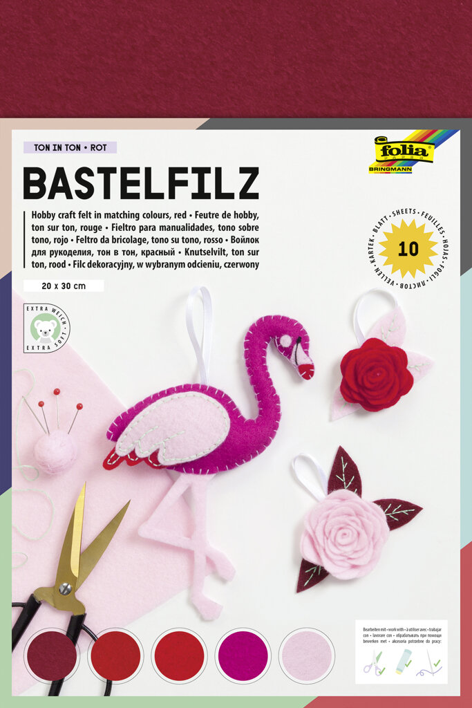 obchod@raj-sitia.skDekoratívny filc (10 listov) je sada 10 listov dekoratívneho filcu s formátom 20 x 30 cm. Na dekoratívny filc sa ľahko nanáša lepidlo a nerobí škvrny. Tento filc odporúčame na celoročné alebo tematické tvorenie. Iste nájdete uplatnenie, kde filc využijete, či už pri šití textilných kníh pre deti, zdobení vencov a ďalších dekorácií.