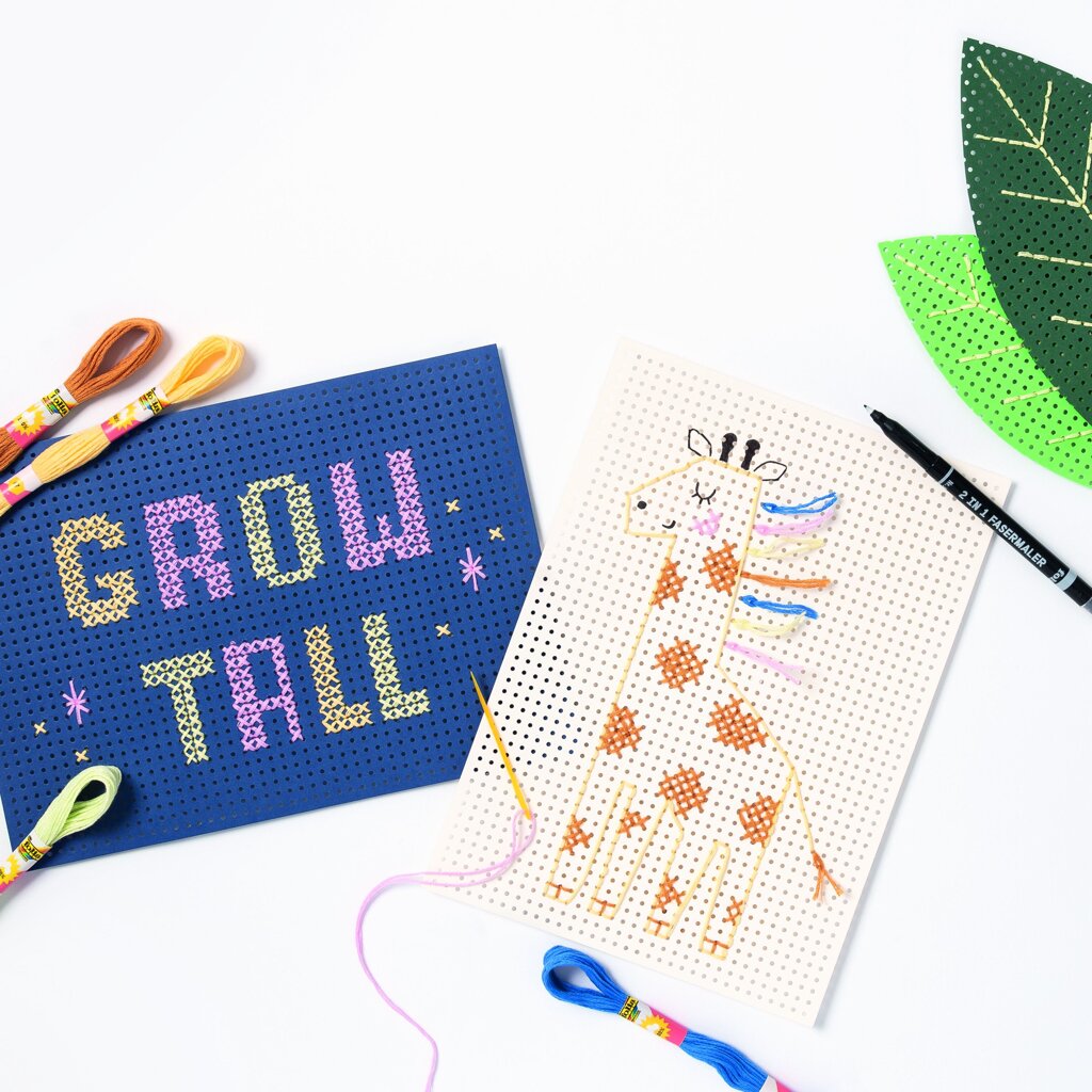 Detská vyšívacia sada s ktorou Vaše dieťa naučí vyšívať krížikovým stehom. Farebné vyšívanie, predpripravené dierkované papiere, všetko pre zábavné vyšívanie.
