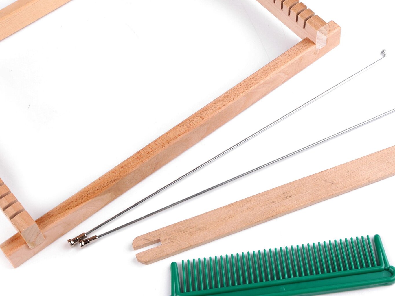 - drevený tkací rám s 20 zárezmi pre osnovné nite
