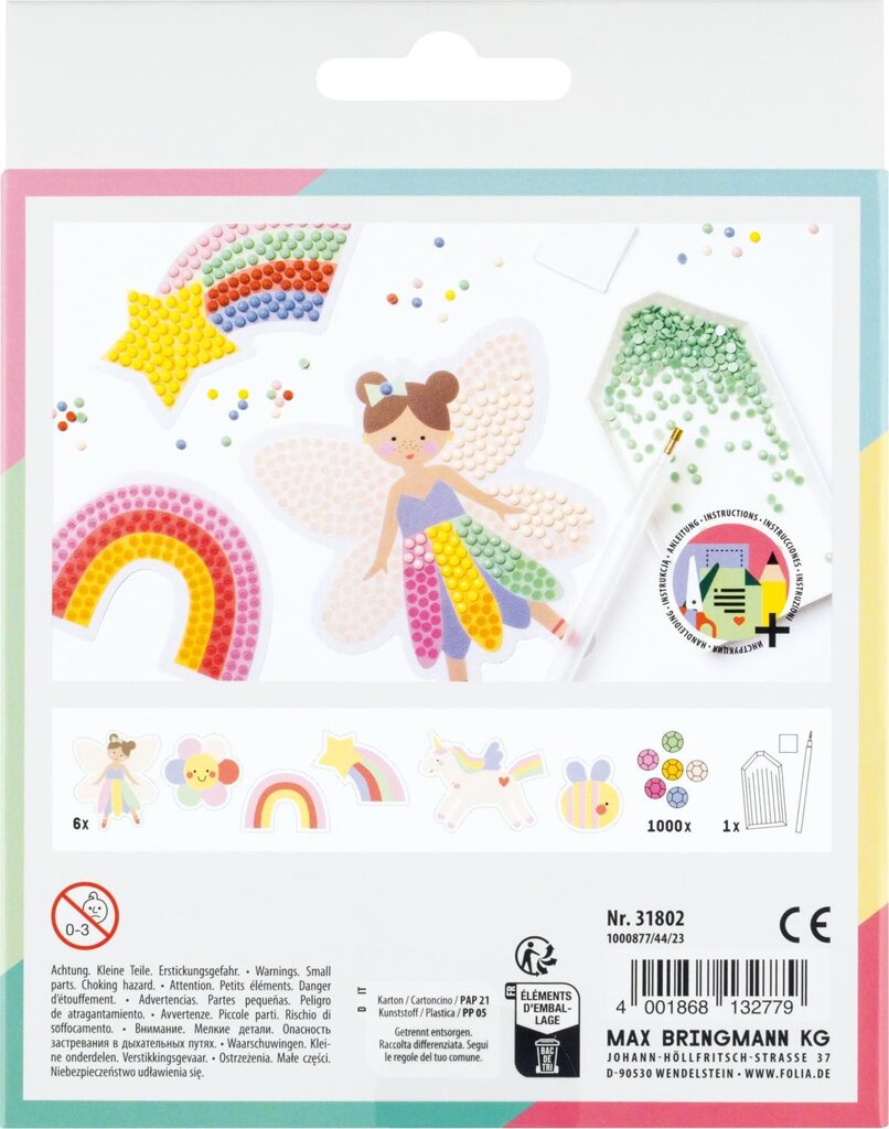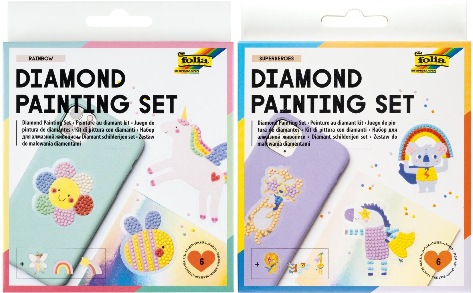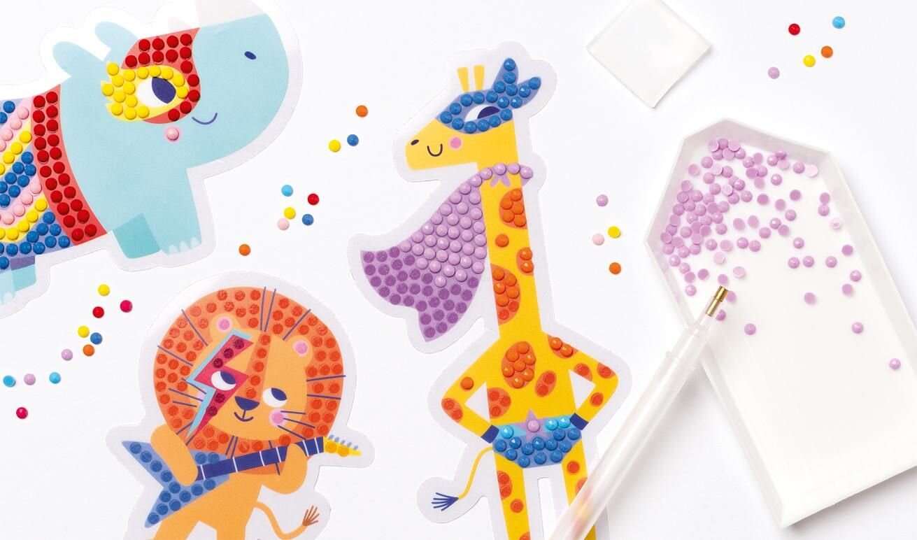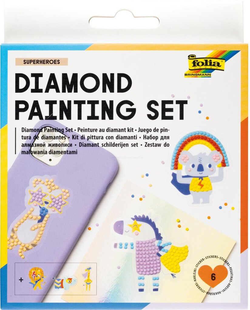 Nádherná sada pre diamantové maľovanie (Diamont painting set) hravo zlepšuje zručnosť a rozvíja kreativitu. Navyše sa pri tom deti skvele zabavia. Vytvorené obrázky je možné nalepiť na peračník, telefón aj iné a vytvoriť tak z fádnej veci jedinečný a očarujúci doplnok s trblietavým leskom. Súprava obsahuje Rainbow (dúhové) motívy.
