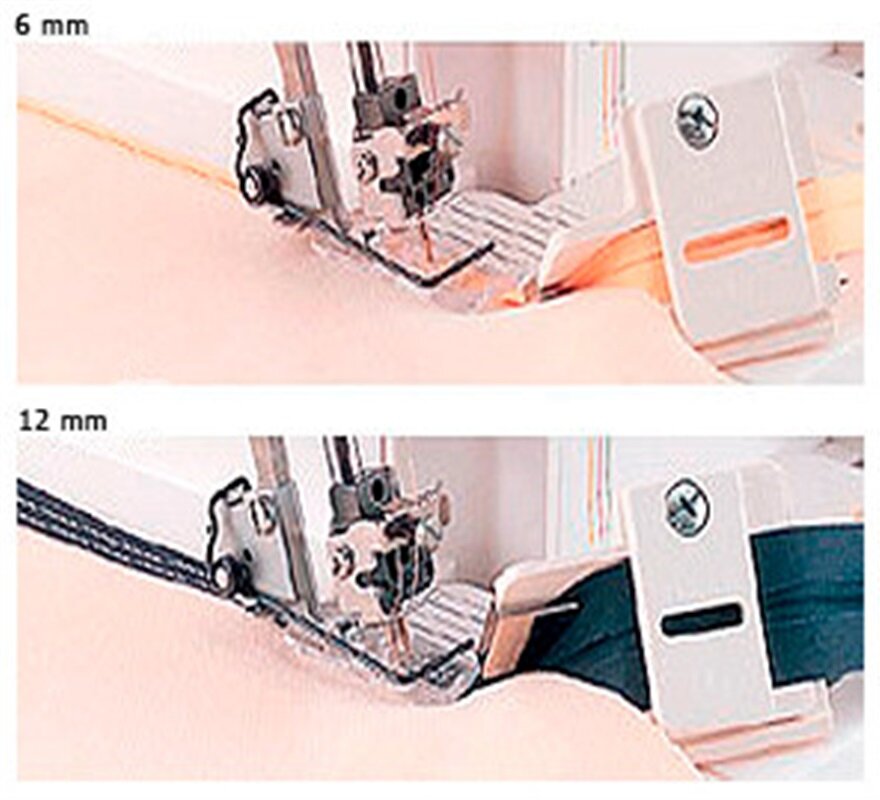 Dvojica zakladačov pre lemy - Brother 2340 CV je pätka pre coverlocky Brother. Dvojica zakladačov pre lemy je určená na šitie úzkych (6 mm) aj širokých (12 mm) lemov za použitia lemovky.