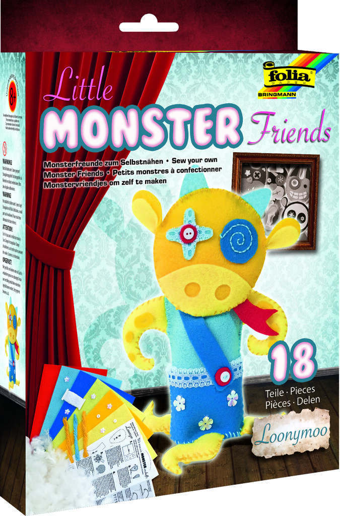 obchod@raj-sitia.skFilcová postavička Looonymoo - Little Monster Friends je kreatívna súprava pre deti. Táto sada je vhodná pre deti od 8 rokov. Pomocou kreatívnej sady si s deťmi ušijete postavičku "Looonymu". Súprava rozvíja fantáziu a jemnú motoriku. Deti si osvoja ručné šitie zábavnou formou.