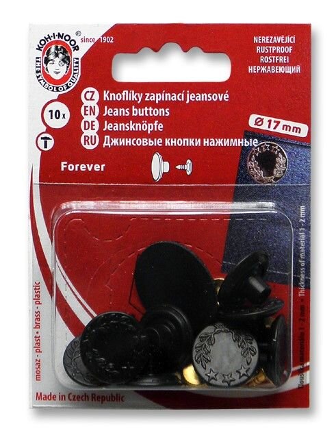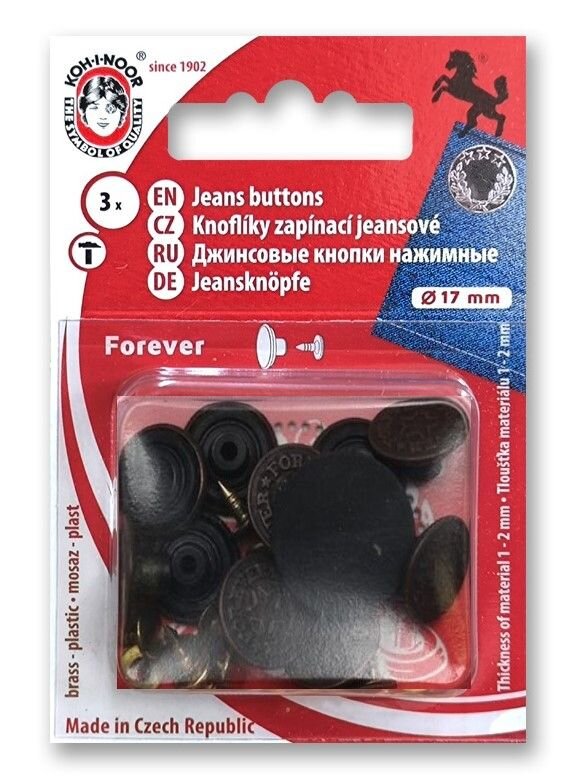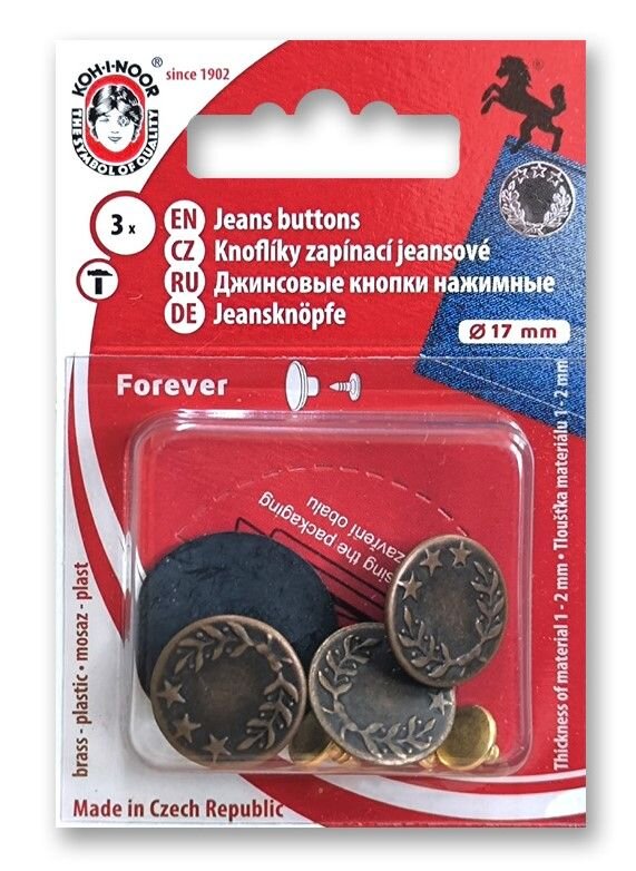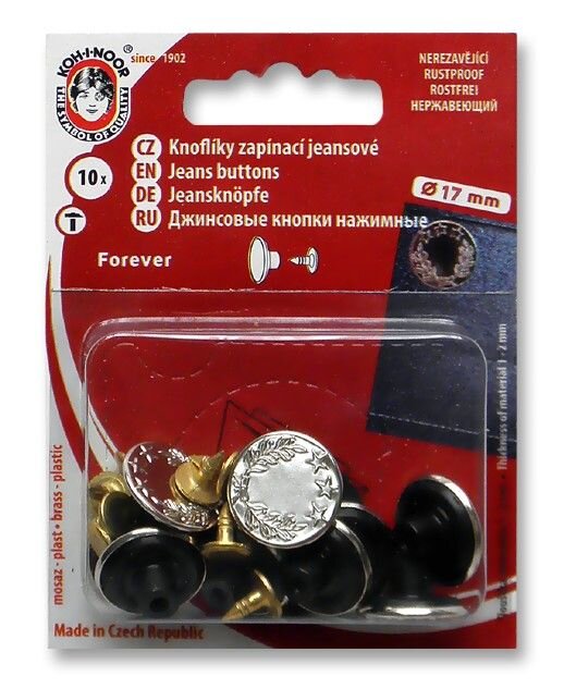 Riflový gombík vo veľkosti 7 s priemerom 17 mm je skvelý na zapínanie jeansov a iných riflových odevov. Vyberajte z prevedenia nikel, čierny nikel, staromosadz a staromeď.
