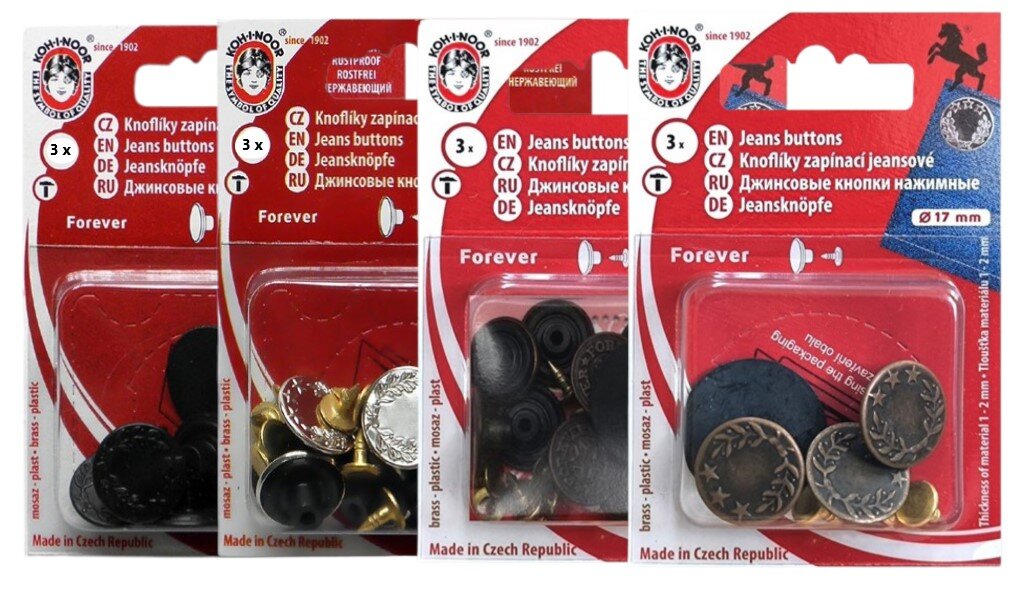 Kovové riflové gombíky, ktoré sa stanú ozdobou nielen riflových odevov. Zapínací jeansový gombík v prevedení nikel, staromosadz, čierny nikel alebo staromeď antik. Jedná sa o nesnímateľné gombíky.