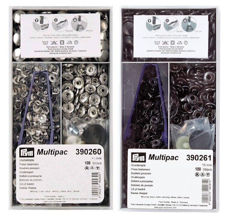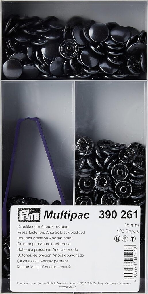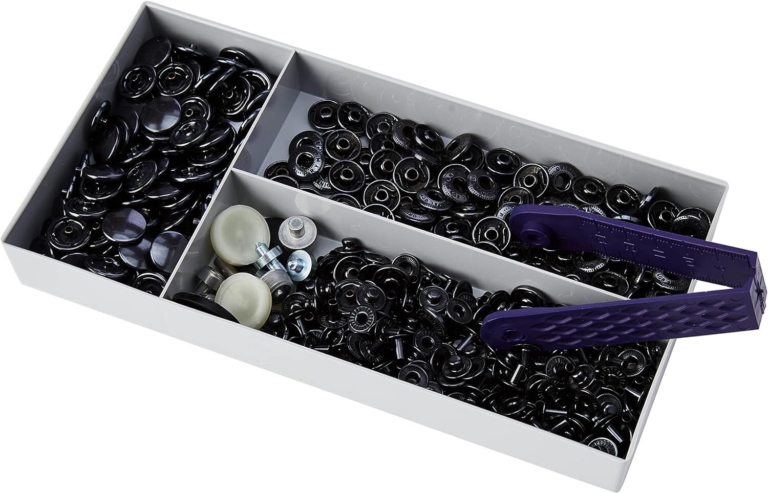 Balenie obsahuje 100 kusov stláčacích gombíkov s priemerom 15 mm + aplikátor + nástavce