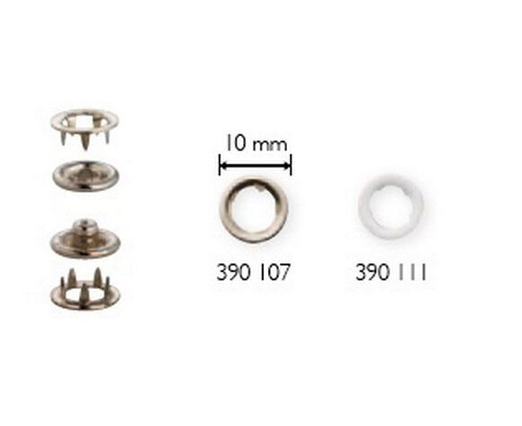 Stláčacie gombíky Jersey s priemerom 12 mm s kódom 390170 je možné aplikovať pomocou kladiva a klieští Vario. Nástavce na aplikáciu kliešťami sú súčasťou balenia.