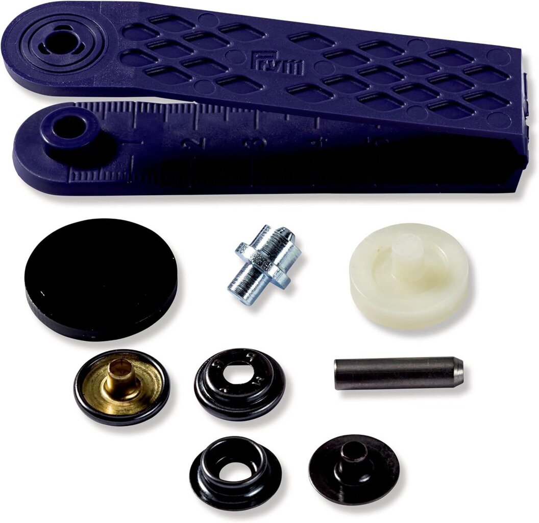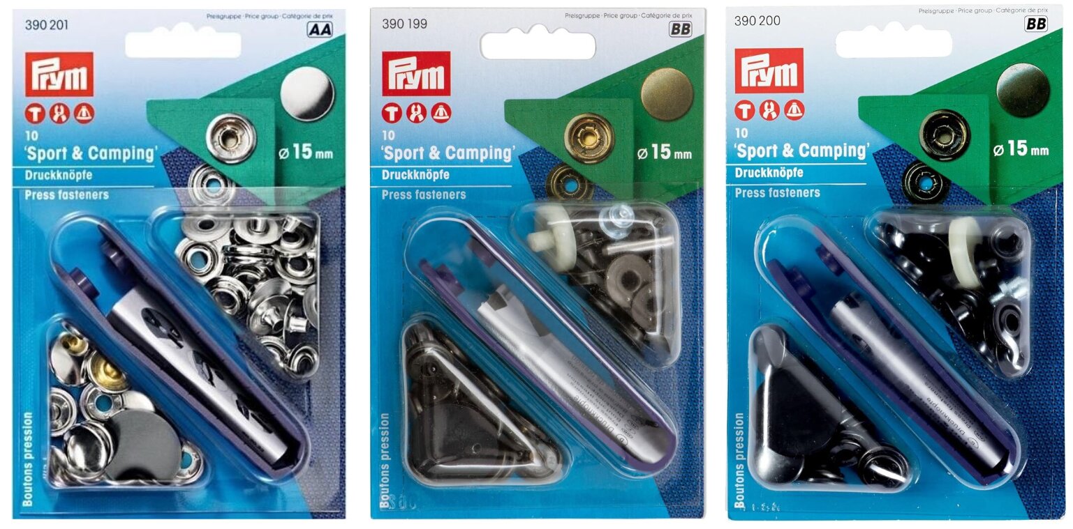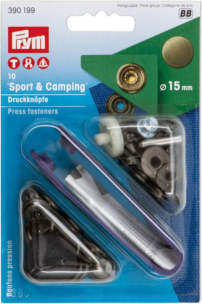 Gombík stláčací SPORT & CAMPING - PRYM je balenie kovových stláčacích gombíkov SPORT A CAMPING s priemerom 15 mm s aplikátorom.