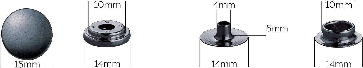 Balenie obsahuje 10 kusov stláčacích gombíkov s priemerom 15 mm + aplikátor + nástavce