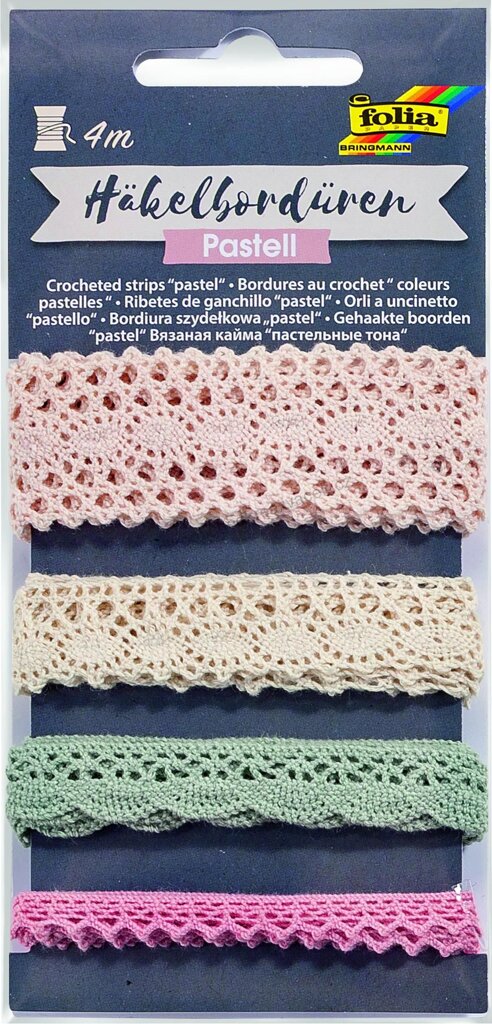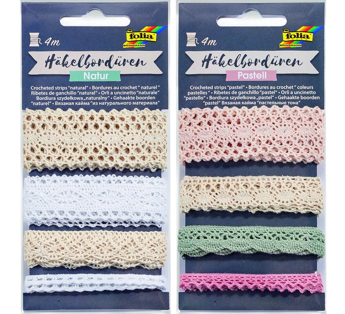 Krásne prepracované háčkované bordúry. Sada 4 bordúr s celkovou dĺžkou 4 metre. Bordúry na kreatívne a dekoračné účely.