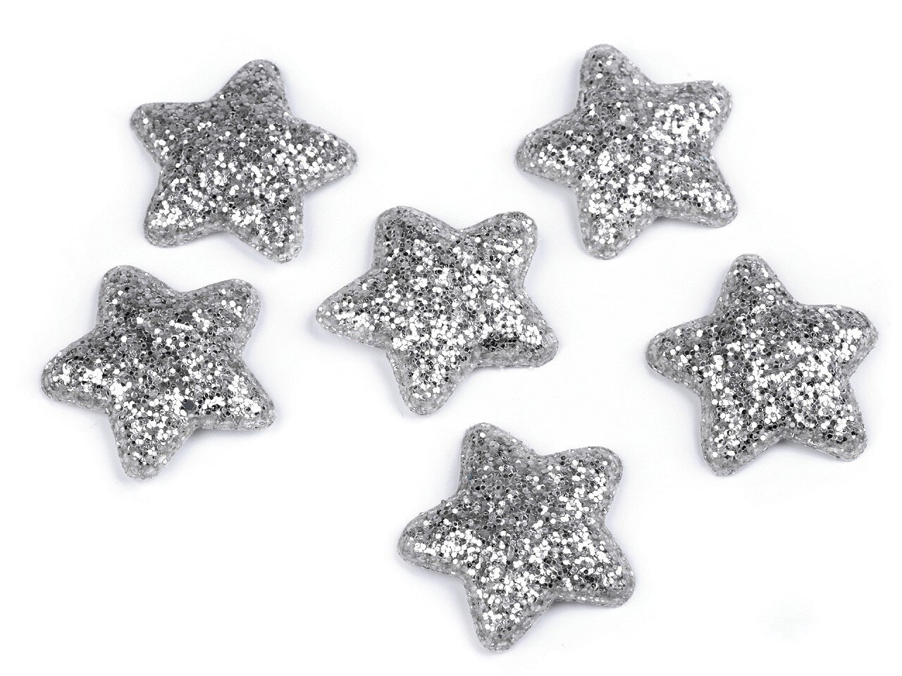 Trblietavé hviezdy s priemerom 50 mm, ktoré využijete pre najrôznejšie vianočné dekorácie. Hviezdy sa dajú lepiť tavnou pištoľou aj šiť. Balenie 10 kusov.