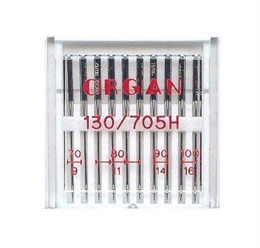 Ihly ORGAN 130/705 H ŠTANDARD (mix 10 ks) je sada ihiel pre overlocky, ktoré majú v návode uvedené ihly 130/705 H. Balenie obsahuje 10 ks ihiel veľkosti 2x 70/10, 4x 80/12, 2x 90/14. Ihly sú vhodné na šitie bežných ma