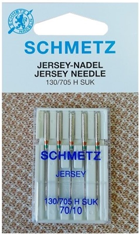 obchod@raj-sitia.skIhly Schmetz 130/705 H-SUK Jersey (5x70) (ball point) na šitie úpletov. Ihly sú vhodné pre šijacie stroje všetkých značiek, ktoré používajú ihly s plôškou. Ihly Ball Point majú zaguľatený hrot, ktorý zabraňuje utekaniu ôk a trhaniu vlákien pleteniny, pretože prechádza medzi vláknami.