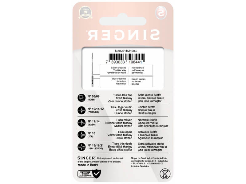 Ihly Singer 2020/801 pre šijacie stroje univerzálne (5x80) je sada 5 ks ihiel o sile 80. Tieto univerzálne (ostré) ihly sú vhodné pre všetky šijacie stroje Singer.