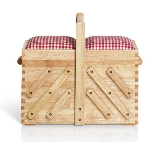 Úložný kôš, ktorý Vám vďaka mnohým priehradkám, malým aj veľkým, ponúka dostatok miesta na uloženie všetkých Vašich šijacích potrieb. Drevený úložný košík zdobený látkou na veku v klasickom červenobielom vzhľade sa prispôsobí každému štýlu šijacej dielne. Látka, ktorá je na veku navyše nemá len estetický význam, dokonale Vám poslúži ako ihelníček, do ktorého si môžete pohodlne odkladať všetky svoje ihly a špendlíky. Košík je vytvorený premyslene a kvalitne. Svetlé drevo, jednoduché otváranie pomocou látkového pútka a mnoho ďalšieho z dokonalého prevedenia Vám ponúka drevený košík Prym.