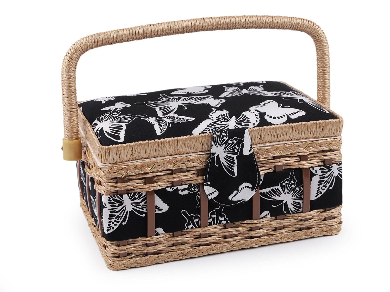 Košík na šijacie potreby so vzorom motýľov je praktický košík, do ktorého uložíte všetky potreby na šitie.