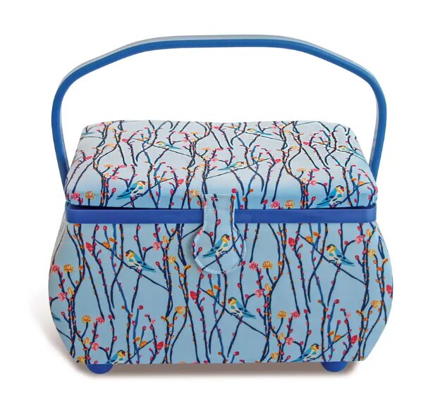 Košík na šijacie potreby veľkosť L s motívom vtáčikov. Štýlový košík bude dekoráciou krajčírskej dielne aj nádherným darčekom.