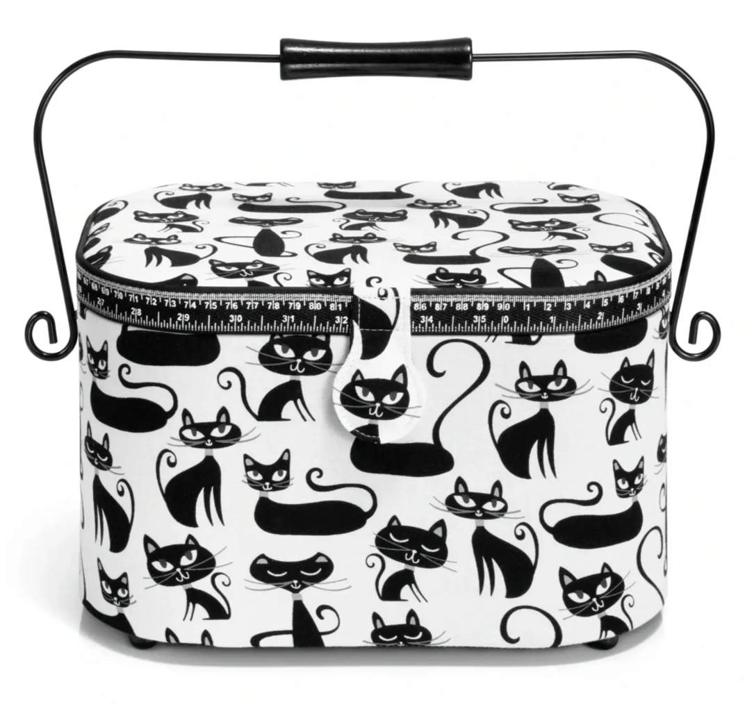 Košík na šijacie potreby veľkosť L s motívom čiernobielych mačiek. Štýlový a elegantný košík bude dekoráciou krajčírskej dielne aj nádherným darčekom.