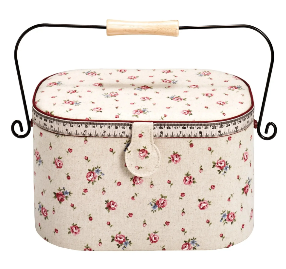 Košík na šijacie potreby veľkosť L s motívom ruží. Štýlový a originálny košík bude dekoráciou krajčírskej dielne aj nádherným darčekom.